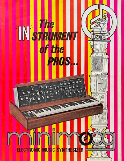 Brutal, caustic, volcanic—Evocative, flirting, caressing—Crisp, powerful, biting—Entrancing, embracing, exhilarating! Extend the stuff your music is made of with the MINIMOOG, a true Moog synthesizer which opens exciting new dimensions of expression to the creative professional.
