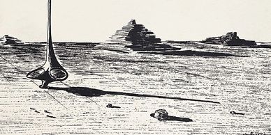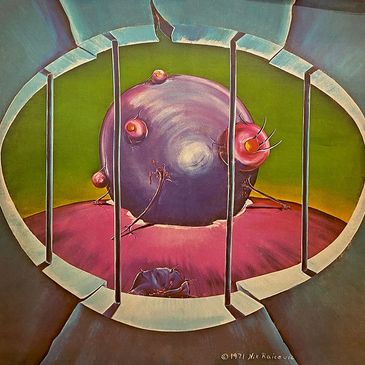 Nik Raicevic's outer space landscape painting ended up becoming the cover for this little known rock band called Locust. They may have walked into his art gallery studio on Sunset Blvd. and selected one of his paintings on display at the time. This was their 1976 album, Playgue.