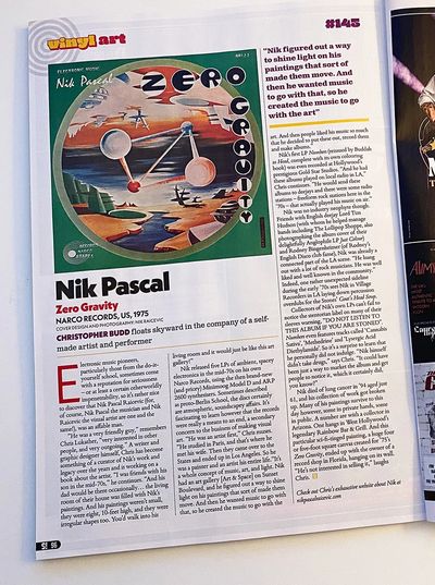 Christopher Budd writes about Nik's electronic music. Revealing the connection to his futuristic artwork, and how the addition of light brought everything together. The art came first. The music was created to support Nik's sci-fi landscape paintings. Nik was a true visionary. Read all about it in Shindig magazine.